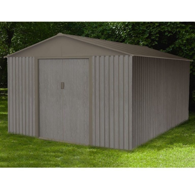 Cet abri de jardin en métal est la solution idéale pour entreposer vos outils de jardin, vélos, barbecue, tondeuse et bois de chauffage. Son aspect en bois vieilli révèle un côté authentique twisté avec un brin de modernité ! Grâce à ses grilles d’aérations situées à l’arrière de l’abri, votre contenu restera au sec toute l’année et l’air intérieur de votre abri se renouvellera. Solution parfaite pour stocker votre matériel de plein air et pour le protéger du froid hivernal ou des rayons du soleil. Cet abri qualitatif a donc tout pour plaire, il est également équipé d’une double porte pour faciliter le rangement de vos objets encombrants. Les portes sont par ailleurs coulissantes à l’intérieur de l’abri pour un minimum de place occupée. Cet abri en métal 10 x 14 est constitué d’acier galvanisé. Il est ainsi beaucoup plus résistant aux intempéries, que ce soit l’eau ou le soleil. Robuste, cet abri est facile à monter et à entretenir. Il ne rouille pas, ne s’abime pas, ne s’écaille pas. Vous l’aurez compris, cet abri est durable et sa garantie de 15 ans vous apporte une certaine sérénité. Besoin d’aide pour trouver l’abri de jardin qui correspond à vos attentes ? Découvrez notre page dédiée.