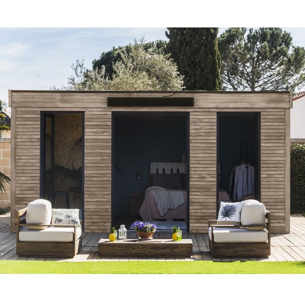Cet abri de jardin semi-habitable en bois est le produit le plus épais que nous ayons dans notre catalogue de produits. En effet, Décor Home présente une qualité exceptionnelle d’isolation grâce à l’épaisseur impressionnante des murs de 90 mm. Le studio comporte notamment une laine de verre en panneaux de 60 mm d’épaisseur pour les murs et le toit. Cela apporte une excellente étanchéité, robustesse, isolation et fait de cette construction une des plus durable du marché. Véritable maisonnette, vous pourrez y installer une chambre d’amis, un espace supplémentaire pour vos enfants, un atelier ou bureau par exemple si vous raccordez l’eau et l’électricité. Avec une surface de 24,70 m², cet abri de jardin moderne semi-habitable est le plus grand de la gamme Décor Home et dispose d’un espace aménageable très facilement. Les finitions de l’abri de jardin Décor Home semi-habitable haut de gamme sont dignes de la gamme premium, avec un double vitrage pour la porte-fenêtre PVC et également pour les deux fenêtres ; ce qui apporte une luminosité naturelle à l’abri de jardin Mais aussi des finitions jusqu’aux parois avec un côté intérieur pare-vapeur et un côté extérieur pare-pluie.